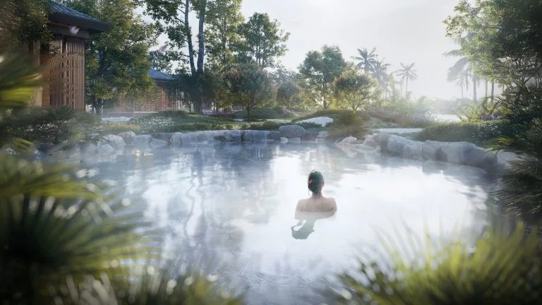 - Khu Khoáng Nóng Tự Nhiên (Alluvia Onsen): Đây là tiện ích cốt lõi và độc đáo nhất, sử dụng mạch khoáng nóng tự nhiên ngay trong lòng đất với nhiệt độ lý tưởng và hàm lượng Silic cao. Khu vực này bao gồm hệ thống bể tắm khoáng nóng, khu xông hơi, spa và trung tâm trị liệu cao cấp, mang đến trải nghiệm dưỡng sinh chuẩn Nhật, giúp cư dân chăm sóc sức khỏe, tái tạo năng lượng mỗi ngày mà không cần di chuyển xa.